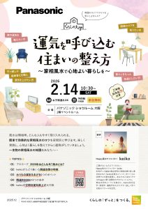 パナソニックショウルームくらしの大学は、各分野のプロフェッショナルと共に、快適で豊かなライフスタイルを学び、理想のライフスタイルを考え実現する体験型プログラムです 運気を呼び込む住まいの整え方~家相風水で心地よい暮らしを […]